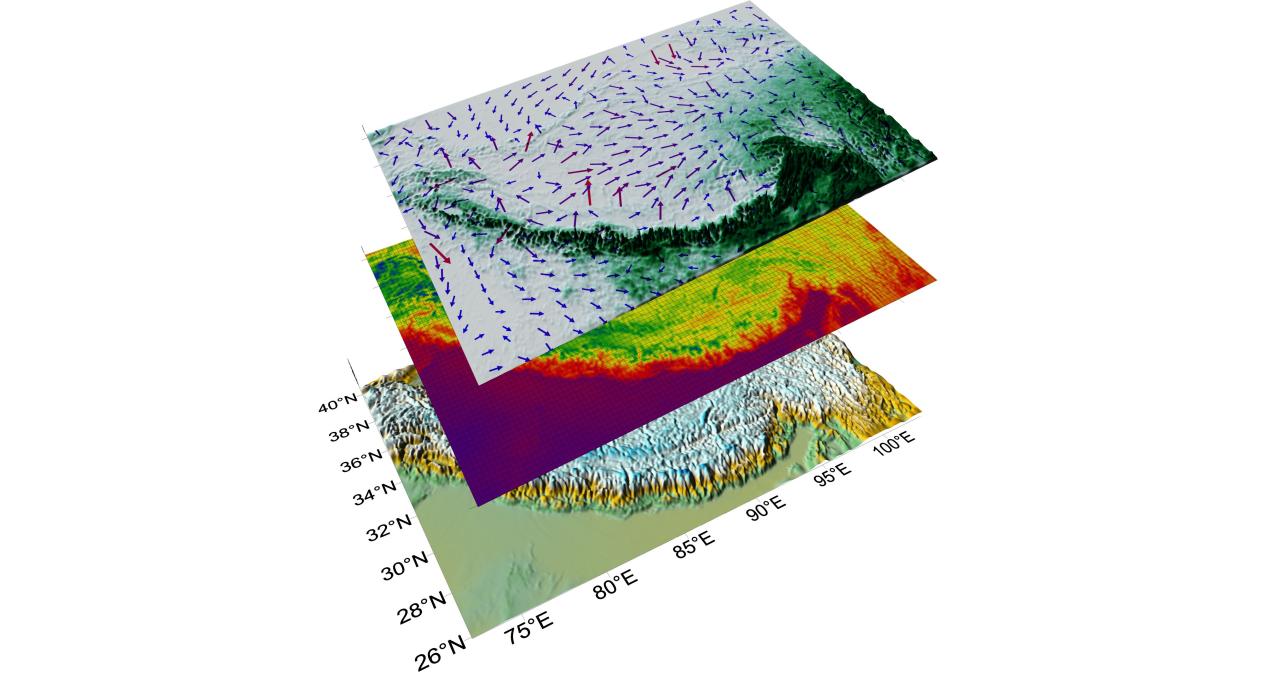 青藏高原是全球气候系统的重要组成部分,通过复杂的热动力机制影响区域和全球气候。然而,高原地势险峻、气候条件恶劣,并且气象观测站分布稀疏,使得青藏高原陆-气耦合系统及其对周边地区的影响难以准确量化。当前全球气象再分析资料存在空间分辨率较粗(几十公里)和时间分辨率较低(3-6小时间隔)等问题,限制了其更为广泛的科学应用。为了应对这些难题,本校科研团队利用WRF模式和3D-var数据同化方法创建了青藏高原高分辨率资料同化数据集(QTP-HRAD)。该数据集覆盖70 ~ 110°E和25 ~ 40°N的空间范围,空间分辨率为5km,时间分辨率为1小时,可用于精细化研究青藏高原的陆—气相互作用、水循环和辐射能量传输过程以及极端天气气候事件。