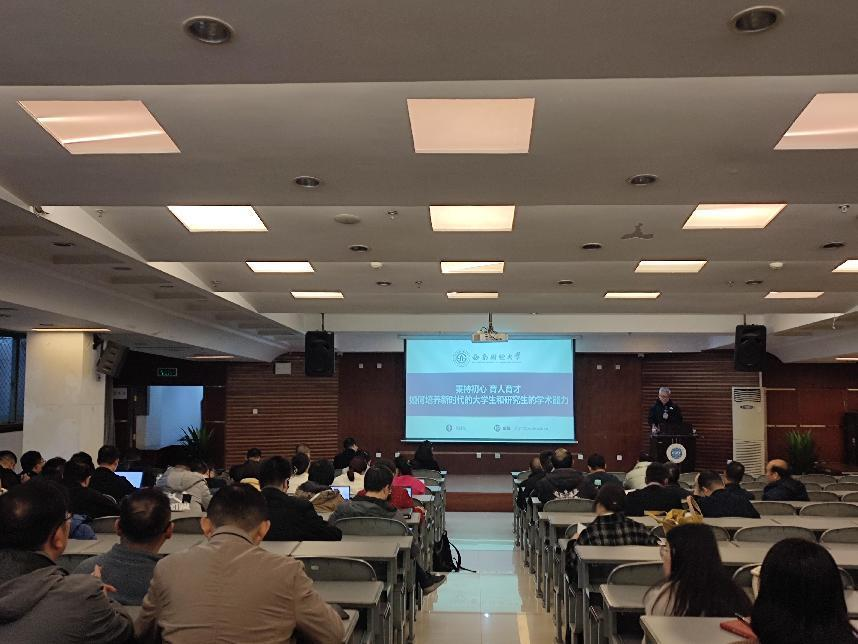 陈建东教授以《秉持初心育人育才——如何培养新时代大学生和研究生的学术能力》为题,结合自身多年的从教经验、教授学生的具体案例,从思想品行和学术道德、选择学生和学术规范、研究方法和科研训练等方面入手,对如何坚持立德树人、培养学生的健康身心、提升学生的学术能力等进行深度分享,令在场老师们深受启发。