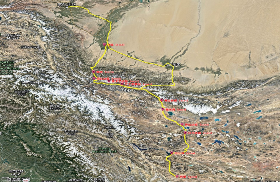 科考队从喀什市出发,途经叶城县,沿G219经和田地区皮山县赛拉图镇(三十里营房)至西藏阿里地区首府狮泉河镇;休整后原路返回皮山县赛拉图镇,从原康西瓦前指处经G580跨越5公里长的康西瓦隧道及喀拉喀什河上游冰川草原山地抵达和田市,随后沿G315返回喀什市。整个科考期间,科考队历经7天长途跋涉,途经16个气象站,气象站平均海拔4700米,喀什气象局气象信息与装备保障中心工作人员沿途对所有的气象站进行了巡检维护,确保数据传输稳定,综合科考总行程达到3000多公里。在这次科考中,科考队员感受到了高原的严酷环境,但也领略到了壮丽的自然风光。全程翻越了5座超过5000米的达板,其中包括海拔5380米的红土达板和5340的界山达板。在翻越这些达板的过程中,科考队员经历了极端恶劣的气候条件,最低温度达到了零下1.7度,降水量达到5.6mm的风雪天气,恶劣的气候条件无疑给科考队员带来了巨大的挑战,让他们对前路充满了担忧。然而,即便在这样的极端环境下,科考队员的身体和心理都承受着巨大的压力。科考队员们依然顽强地抵抗着一切困难,科考队员们互相鼓励,互相扶持,让他们的心灵得到了历练,使他们的意志变得更加坚韧。共同度过了一个又一个难关。不断朝着更高的目标前进。