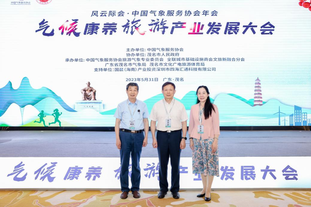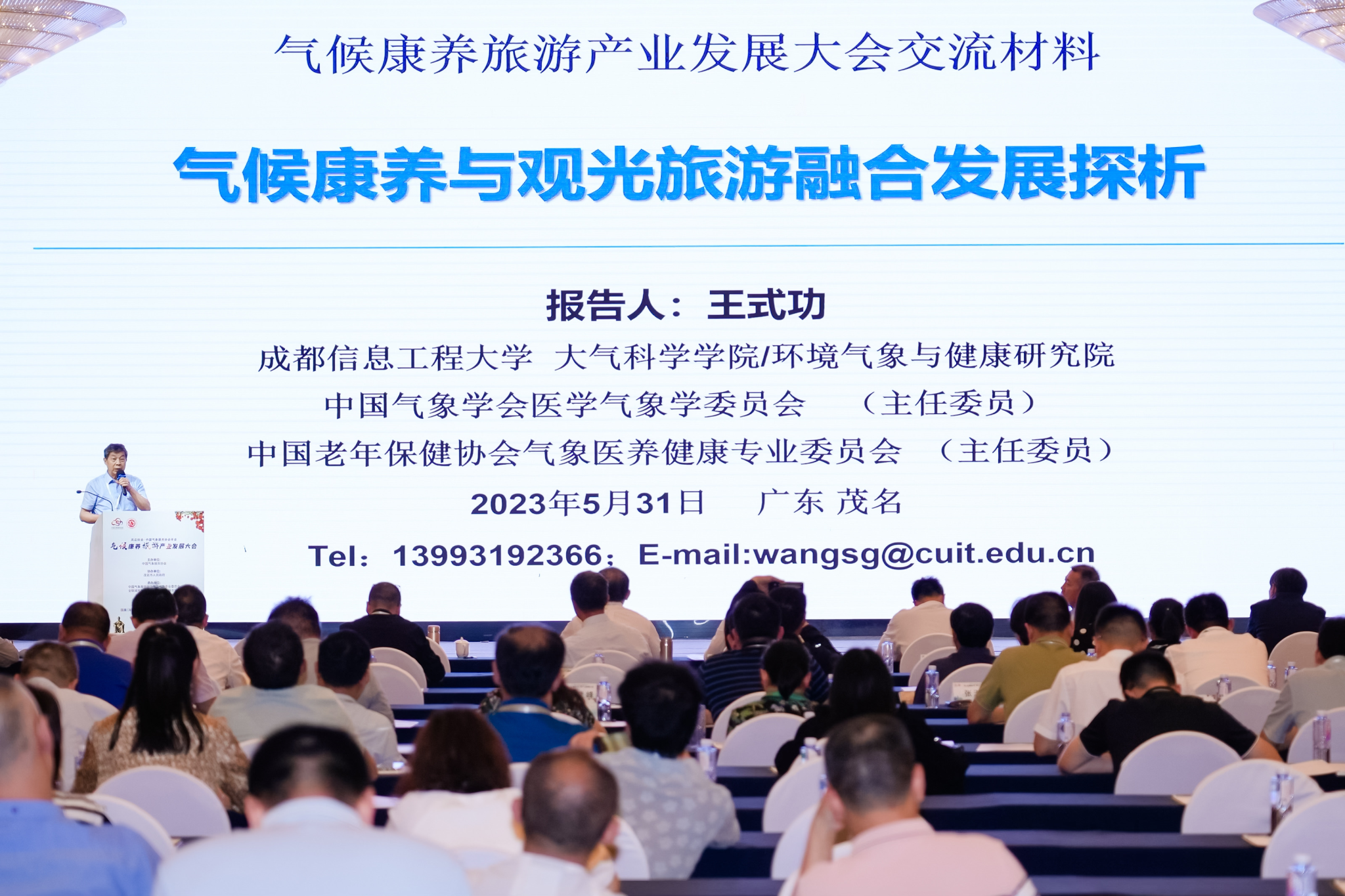 【本网讯】5月31日至6月1日,由中国气象服务协会主办,茂名市人民政府协办,中国气象服务协会旅游气象专业委员会、全联城市基础设施商会文旅新融合分会、茂名市气象局、茂名市文化广电旅游体育局承办的2022-2023年会气候康养旅游产业发展大会在广东茂名召开,中国气象服务协会会长许小峰、中国非物质文化遗产保护协会会长王晓峰、中国气象局原副局长余勇、茂名市人民政府副市长高雪山、广东省气象局副局长曾琮、广东省文化和旅游厅二级巡视员李再炎、中国气象服务协会常务副会长孙健、全联城市基础设施商会文旅新融合分会会长彭志凯等领导出席会议,伟德官网大气科学学院王式功教授和管理学院黄萍教授应邀在会上作专题报告。