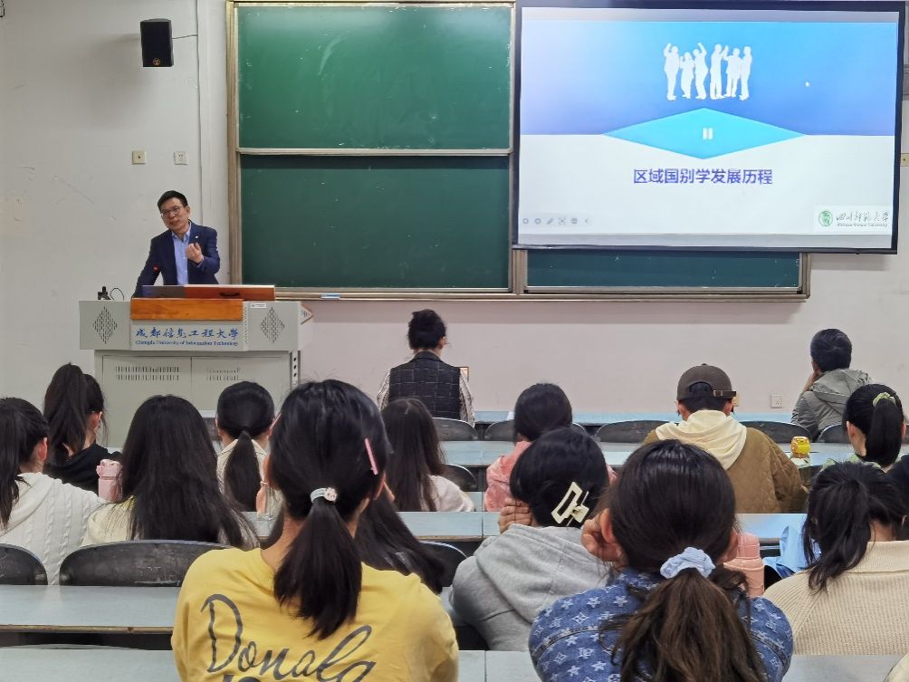 【本网讯】4月13日,四川师范大学全球治理与区域国别研究院执行院长吕京教授,受邀来到外国语学院讲学。学院院长黄驰、学院党委书记杨昊参加了学生讲座以及后续的教师座谈。学生讲座主要面向学院2022级本科生开展,由安丽娅老师主持,学院的部分教师也到场参与。