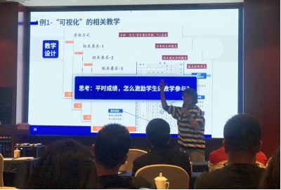 四川大学计算机学院党委副书记朱敏教授以“课程思政建设”为主题,从“认同一件事,才能干好一件事,喜欢一件事,才能干得更好”谈起,教学生是如此,课程思政也是如此。她从家庭圈、工作圈、个人成长三个方面分享了其思政动力,并鼓励青年教师要以教师的自豪感、责任感、自驱力,用“热爱、坚持、真诚、合作”不断提升自我修养,向学生传递积极的人生观、价值观、世界观;随后,朱教授以课程《可视化》、《技术前沿与专业实践》的思政实践为例,展示了如何通过教学设计、教学实施让一门课程融入课程思政目标,达到春风化雨的效果。朱教授启示青年教师,教师对专业的热爱、对知识的诚信、对科研的探索、对未来的创新这些价值理念和精神追求,就是对学生最好的影响和感化;课堂是发挥育人的场景、片段,育人应当无边界,思政育人也不仅仅局限于课堂。