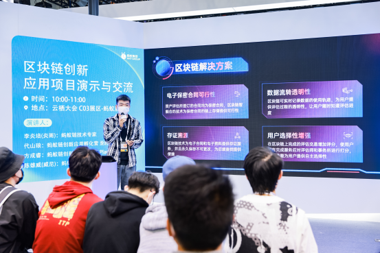 4日上午,路演开始。受邀参加路演的学生团队分别是bv伟德国际1946“dreamChain”团队和浙江大学“Planet”团队。“dreamChain”团队由学院区块链工程教研室主任郑庆霄副教授指导,学生成员有2020级李丹妮,代山琅,王玥,陈思达,魏浩铭,项目汇报人为代山琅。本次路演清晰明了地介绍了团队项目方案,并与会场嘉宾和各大高校学生一起进行了深度探讨,蚂蚁链技术专家对团队方案给予充分肯定。