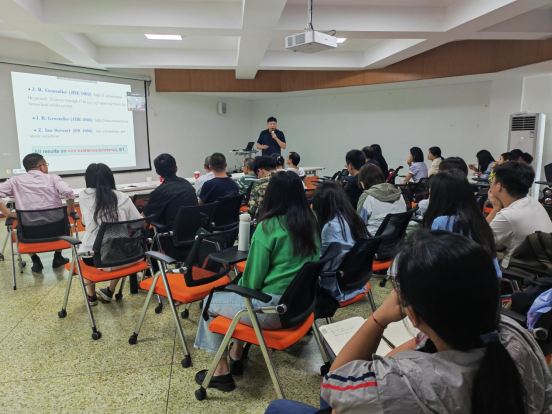 本次会议围绕“动力系统理论发展前沿、偏微分方程理论发展前沿、动力系统与微分方程应用研讨”三大主题,邀请该领域国内外著名学者,围绕动力系统理论、偏微分方程理论及在生物学、生态学等领域的实际应用等方面报告最新研究成果与发展动态,并依托会议开展相关培训。会议由五场报告组成,浙江师范大学韩茂安教授作了题为《General study on limit cycle bifurcation near a double homoclinic loop》的报告,美国德克萨斯大学乔志军教授开展了题为《Negative order integrable equations with peakon solutions》的报告,电子科技大学张健教授作了题为《Big Solitons and Multi-Solitons in Nonlinear Schrodinger Equations》的报告,电子科技大学钟守铭教授作了题为《基于网络安全对网络控制系统的稳定性分析》的报告,四川大学张伟年教授作了题为《同宿环与同宿指环》的报告。