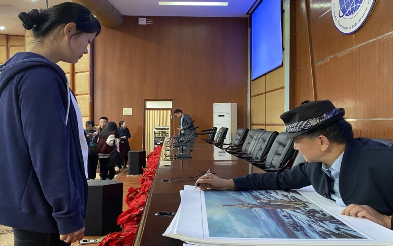 马洪江副书记在总结发言中鼓励同学们走出舒适圈,拓展眼界开阔视野,培养审美情趣,去探寻艺术的美。会后,林跃向与会师生赠送了其亲笔签名的作品照片和明信片。
