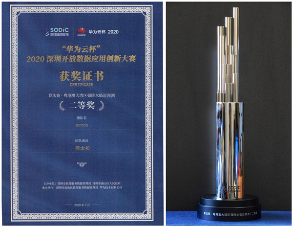 【本网讯】近日,“华为云杯”2020深圳开放数据应用创新大赛落幕。本次大赛以“数聚粤港澳,智汇大湾区”为主题,共设置4个赛道:算法赛、数据创意赛、数据分析赛和南山专题赛。本次大赛面向全球高等院校、专业研究机构、数据分析公司、开发者征集基于开放数据的创新应用解决方案和算法模型。伟德官网中国气象局大气探测重点开放实验室博士后、应用数学学院教师熊太松组成的panda团队在算法赛—粤港澳大湾区强降水临近预测中获得大赛二等奖。