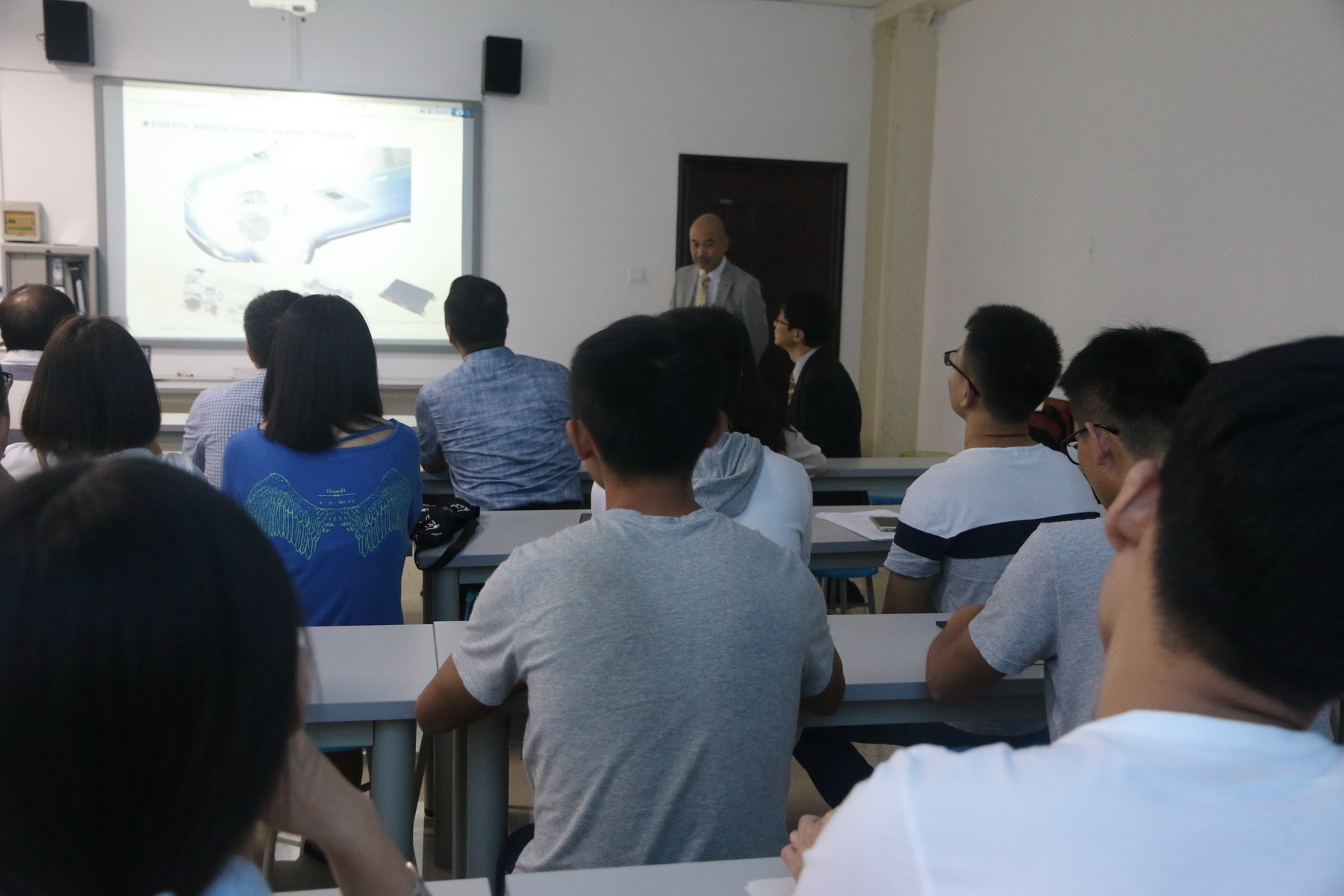 【本网讯】7月6日上午,应控制工程学院机器人与智能系统国际联合研究院的邀请,日本京滨公司枥木研究中心钵吕俊隆和袁方两位部长在金工楼分别举办了题为“车辆的排放比较和评价”及“电动车和电池的发展趋势”的学术讲座。本次讲座由控制工程学院刘鹏副教授主持,控制工程学院相关科研团队数十名师生参加了讲座。