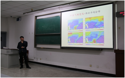 赵勇的报告题目为《印度洋增暖对中亚夏季降水的影响》。他对新疆夏季降水的研究现况进行介绍,指出现有的研究更多集中在要素的气候变化,而对于其变化机制的讨论较少。基于此,他运用CMIP5模式,对中亚地区降水机制进行深入分析,得出塔里木盆地对流层中高层冷中心是造成中亚夏季降水的重要因素这一结论。
