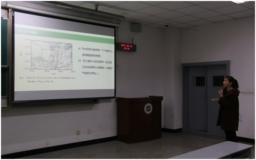 【本网讯】3月31日晚,大气科学学院第十九期研究生论坛在1301教室举行。大气科学学院副教授赵勇,2015级硕士研究生孙一、吴珍珍、冯冬蕾为学院师生作学术报告。各年级研究生积极参加。