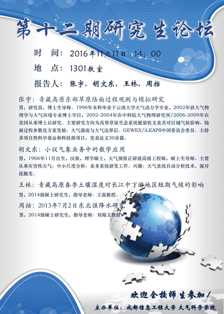 来源:大气科学学院 作者:王姝日期:2016-11-10 审核:新闻中心 点击: