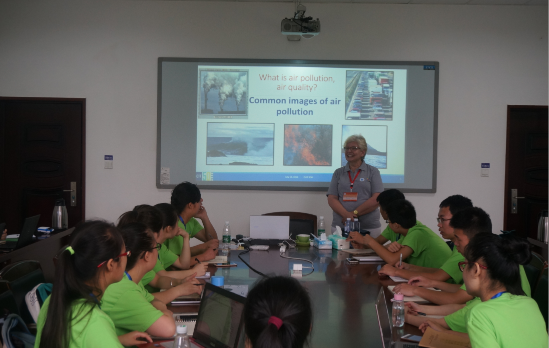 Then,at 10 a.m.In room 221,Prof. Xu warmly welcomed Prof.Olga Petrov,showed great gratitude to her and gave a brief introduction about her. Prof.Olga Petrov come from British Columbia Institute of Technology,which located in Vancouver.expertised in the areas of air quality monitoring and management, Over 25 years of cumulative teaching, consulting and management work experience.Prof. Xu stressed that this is the first time for Summer School education in CUIT, and hoped that students who participated can treasure this opportunity to study hard.