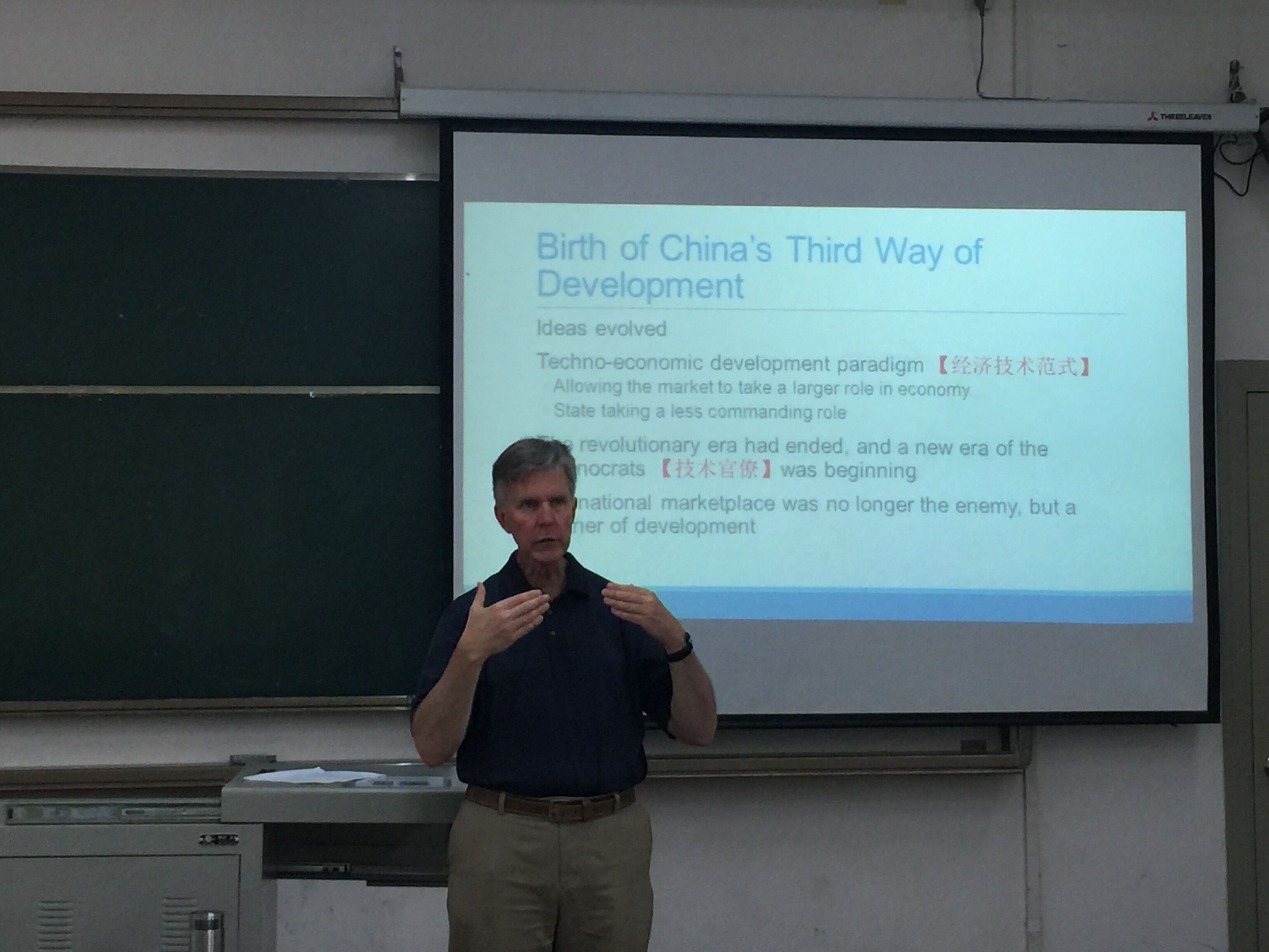 【本网讯】 6月24上午,美国新罕布什尔大学政治学院Lawrence C. Reardon副教授在航空港校区1103教室为伟德官网政治学院教师作学术报告,主题为“中国发展的第三条道路”。报告会由伟德官网政治学院副院长李忠伟主持,政治学院教师和其他学院相关教师参与了学术报告会。