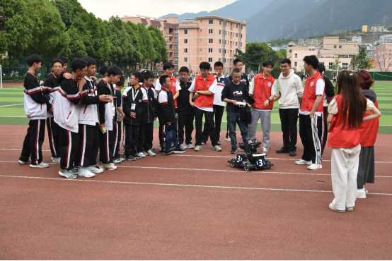 【本网讯】4月12日,自动化学院智能机器人创客科普基地选派师生志愿者赴甘孜州泸定县泸定中学开展机器人科普活动,帮助中小学生培养创新意识。泸定中学数百名师生参加了当天的活动。