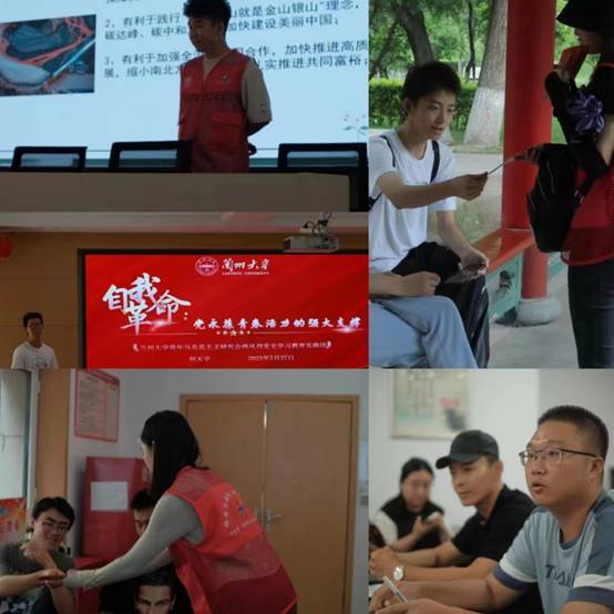 实践团队在兰州市西固区团委、西固区水务局工作人员的带领和支持下,在河口古镇、下川水车园、新城技艺和新城记忆馆实地查看并深入了解黄河(西固段)生态环境保护和高质量发展情况,详细了解近年来西固区在黄河生态、水源地保护等方面所作的工作和取得的显著成效。在金城公园广场和西柳沟街道上坎社区,实践团队通过现场宣讲、随机访谈、发放宣传册等方式向当地返乡大学生、市民群众和青少年进行了环境保护、生态文明、绿色低碳、节水护水知识宣传并开展普通话推广活动。期间,与兰州大学马克思主义学院二十大精神宣讲团队成员进行了二十大精神的学习和交流。