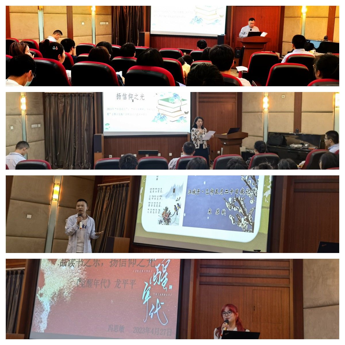 【本网讯】在2023年图书馆文化周之际,”杏坛”读书会和“杏仁”读书会于4月27日晚在学校图书馆五楼集体视听室举办了2023年“书香成信”之“品读书之乐,扬信仰之光”读书分享会。宣传部副部长袁华、图书馆副馆长马小林、自动化学院研究生文鹏程、大气科学学院大二学生冯思敏等师生代表参加。