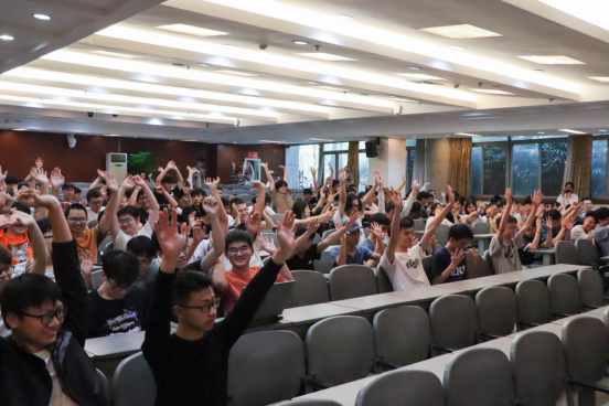 在讲座中,杨老师根据自身经验与经历,为大家如何处理情绪提供了一些切实可行的方法,如运动,听音乐,找人倾诉等等,引导大家合理应对心理压力,教会同学们拥有一个自信健康的心理,让梦想自信绽放。在讲座过程中杨老师还与同学们互动,同学们积极配合,听从杨老师的指导将双手高高举过头顶,现场氛围轻松愉快。