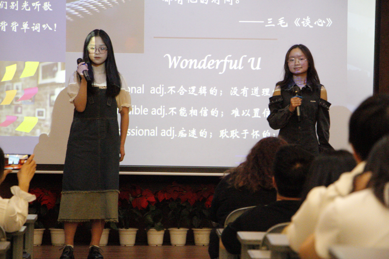 一场青春洋溢的英语才艺秀,满载青春澎湃的梦想。本次才艺秀的主题是“用英语展示青春梦想”。活动开始之前,主持人邀请Barbara老师致辞,对所有的表演者和观众表示热烈欢迎,希望更多的同学能够踊跃参加类似活动,充分展现出同学们的自信和热情。表演参与者们通过各种形式,如英语歌曲、朗诵、舞蹈、戏剧表演等,表达了他们对英语的热爱和对未来的憧憬。观众们也被他们的表演所感染,不时报以热烈的掌声和欢呼声。