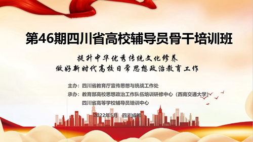 【本网讯】为认真学习贯彻习近平新时代中国特色社会主义思想,深入贯彻落实党的十九届六中全会精神,进一步推动高校思想政治工作专门力量建设,切实培养一支高质量、高水准的高校思政工作骨干队伍,不断提升高校思想政治工作质量,5月9日-10日,由四川省教育厅宣传思想与统战工作处主办、教育部高校思想政治工作队伍培训研修中心(西南交通大学)和四川省高等学校辅导员培训中心承办的第46期四川省高校辅导员培训班在线上顺利开展。来自全省120所高校120余名学工队伍管理干部或专职辅导员代表参与培训,伟德官网文化艺术学院辅导员李雅婧参加此次培训。