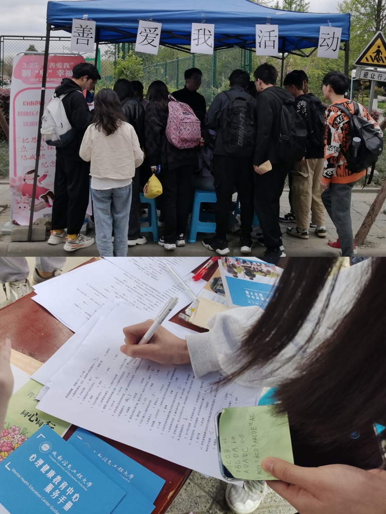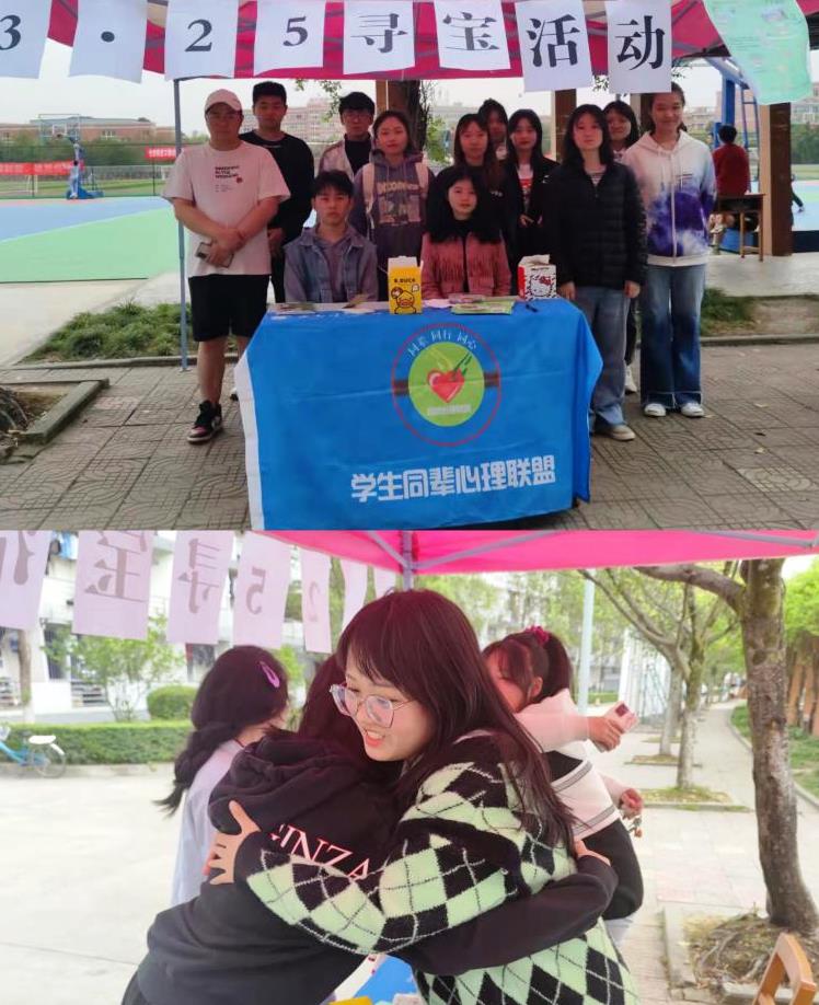 同学们热情参与此次活动,展现当代大学生奋发蓬勃、积极向上的精神风貌。活动期间开展了爱的抱抱、寻宝活动、有奖答题和未来寄语等一系列内容丰富新颖的心理健康教育宣传活动,在校园内又掀起了一股心理健康热潮。