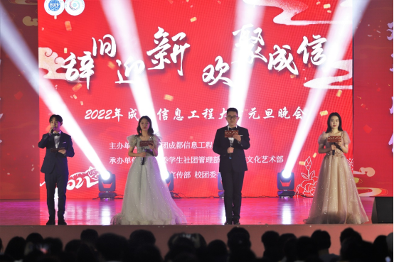 【本网讯】12月29日晚,为庆祝即将到来的新年,由校团委主办,各校级学生组织承办的"辞旧迎新,欢聚成信"元旦晚会于龙泉校区大礼堂举行,两校区师生参加了本次活动。