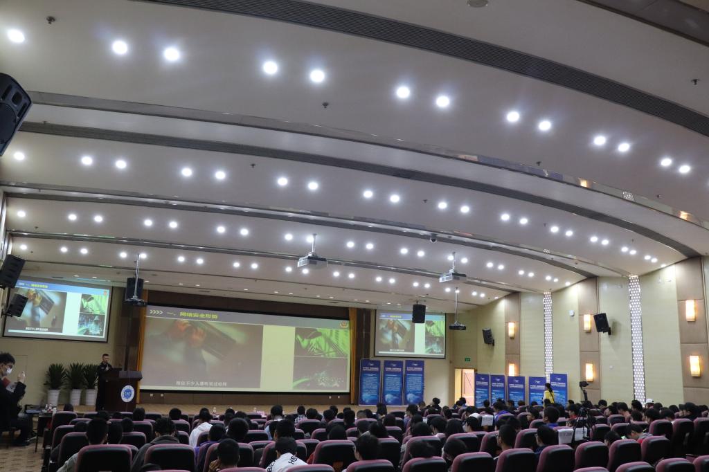 讲座上,道格安全研究实验室成员刘宇进行了网络安全技术展示。他现场展示了如何通过漏洞采集网络用户个人信息,以此引导同学们警惕不明网站,保护好个人信息。学生代表赵骏博宣读《网络文明倡议书》,倡导同学们依法、文明、理性上网,做守法、文明的好网民。