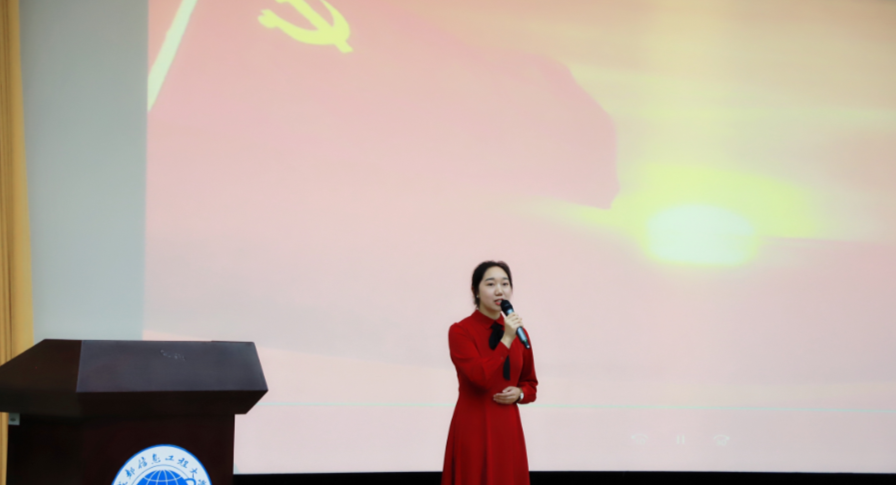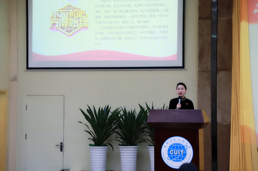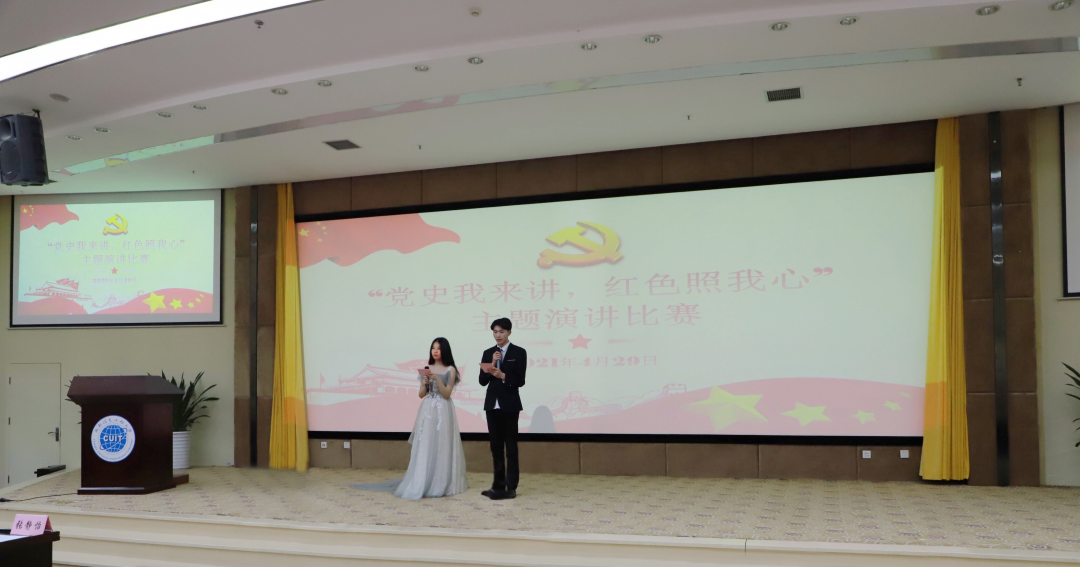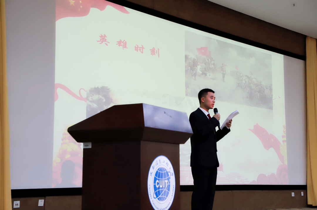 来自全校17个学院的17名参赛选手齐聚赛场,用富有感染力的语言,真挚的情感,表达出了成信大学子激情昂扬的爱国热情,跟党走的坚定信念。比赛开始前,继续教育学院张静怡老师,结合自身的所听、所闻、所悟、所感讲述过去到现在中国在中国共产党的领导下发生了天翻地覆的变化,表达出了自己身为教育工作者要听党话、跟党走、做新时代奋斗者的坚定信念,精神饱满、感情充沛地为选手和观众们讲述了党的历史和祖国的繁荣昌盛,点燃现场同学和老师们的雄心壮志。