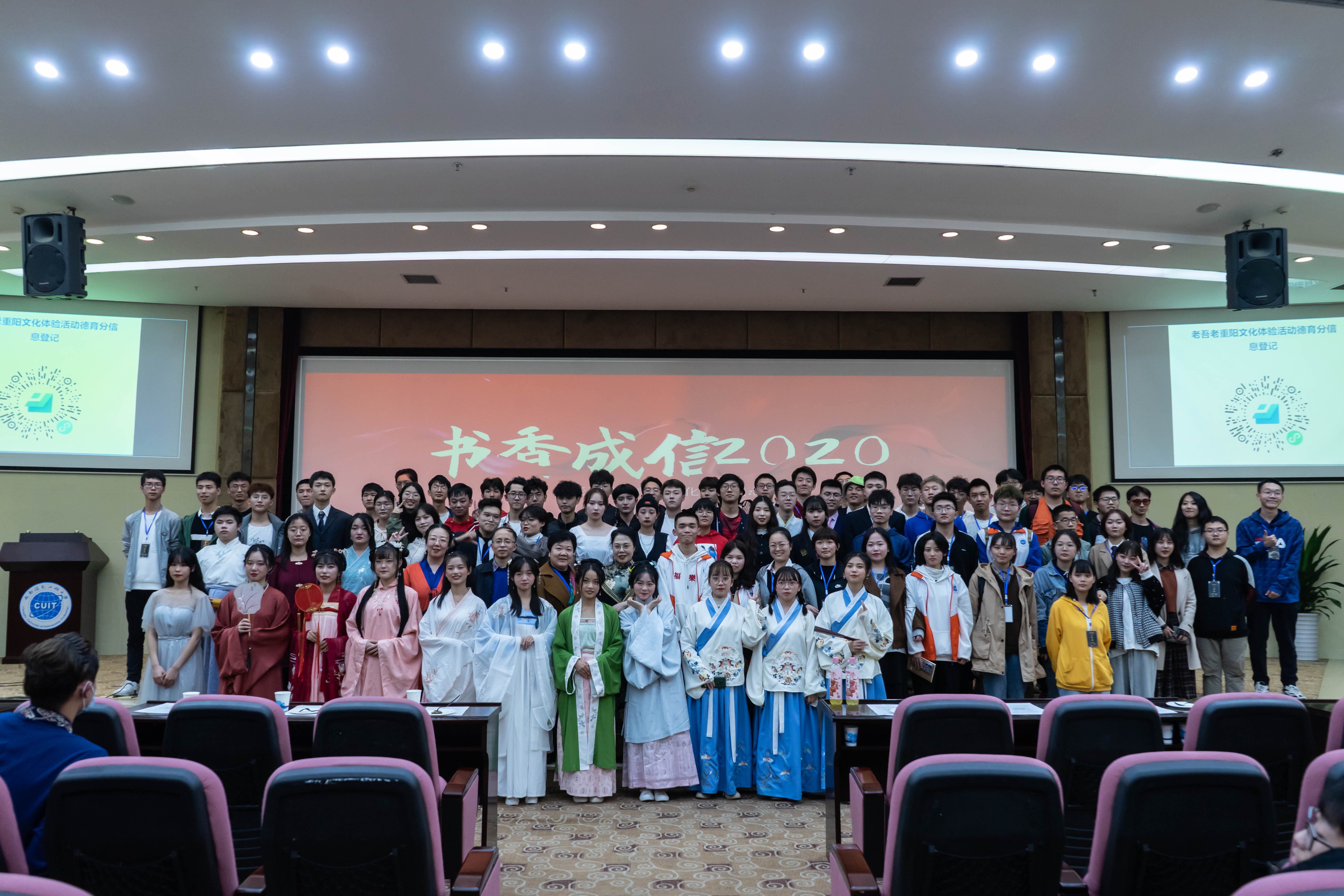 【本网讯】近日,图书馆和校团委联合在国际会议厅,举办了一场别开生面的“2020书香成信”老吾老——重阳文化体验活动”。图书馆副馆长、图书馆学生社团指导老师、离退休教师代表、校团委学生社团管理部、学生益友读书协会、学生向日葵剧社、学生曙曦汉韵社、学生不二文学社、学生辩论者协会等十二个文化社团及学生代表近300人参加了此次活动。