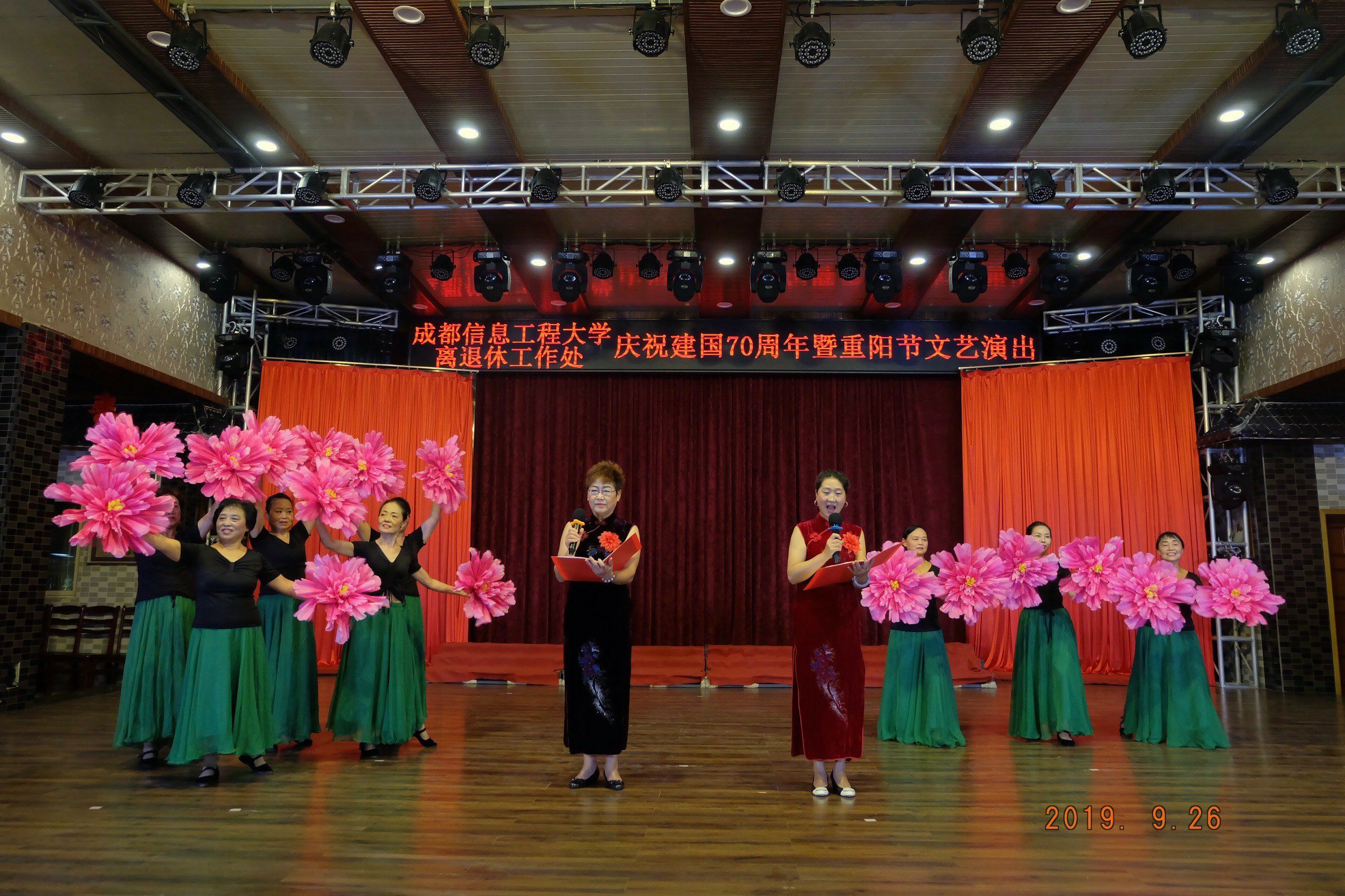 【本网讯】9月26日,离退休工作处以“我和我的祖国”为主题,开展庆祝中华人民共和国成立70周年暨重阳节文艺演出,校党委副书记马洪江参加活动。