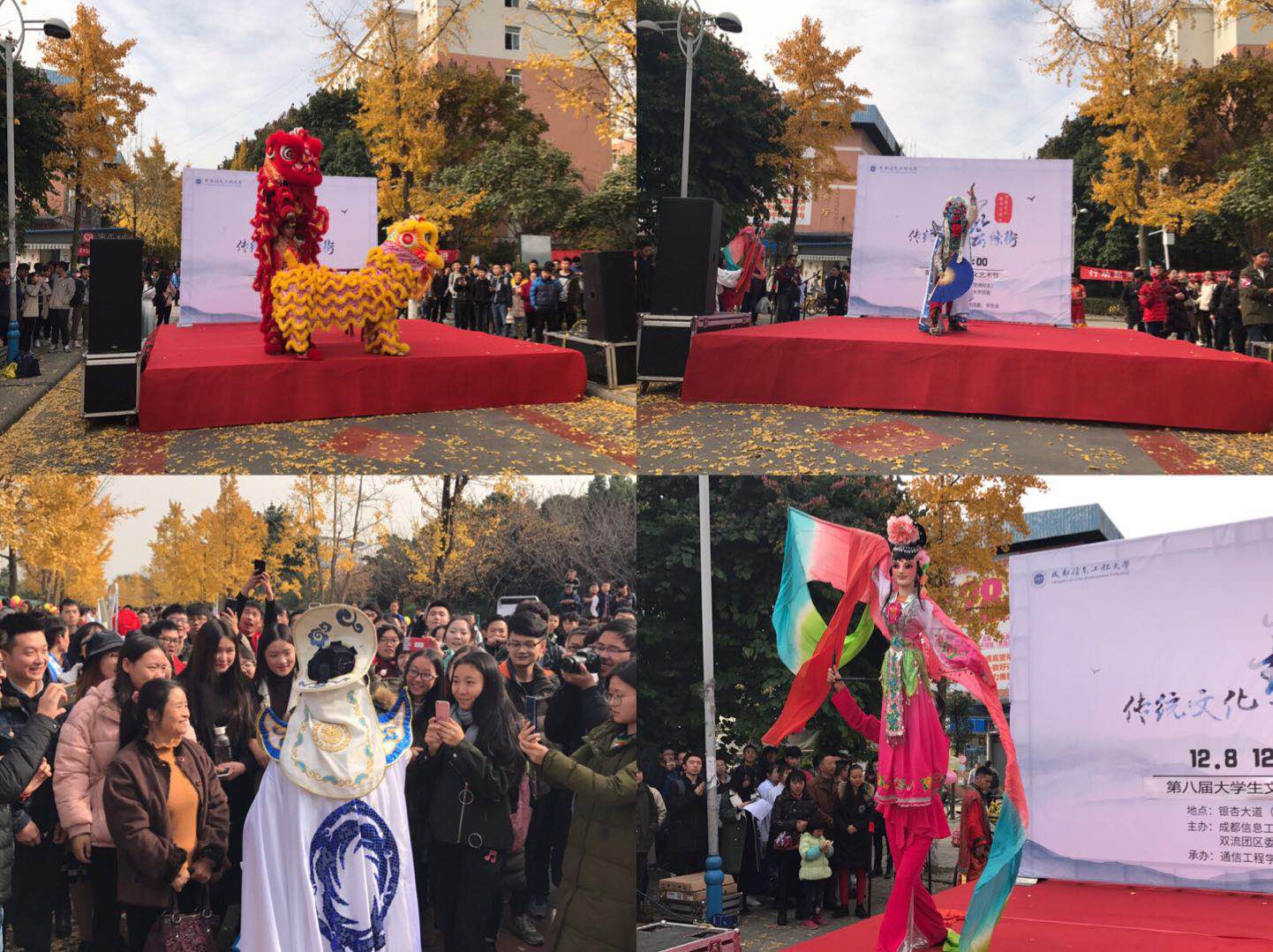 【本网讯】12月8日中午,第八届大学生文化艺术节传统文化“艺”条街活动在伟德官网航空港校区银杏大道举行。本次活动由学校团委、双流团区委主办,通信工程学院承办。校团委负责人,部分学院院长、总支书记(副书记)、团委书记,学校部分教职工与近2000名成信学子参加了活动。