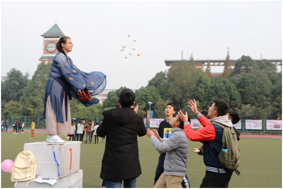 随着主持人宣布活动开始,同学们纷纷投入到比赛当中,10余项等具有深厚传统文化和浓郁民俗气息的项目吸引了同学们的热情参与。活动以弘扬民俗体育文化为主旨,将活动设定为积分竞赛制,设立了抢花炮,投壶,踢毽子等12个游戏项目,每小队6人共有61支队伍参与活动。