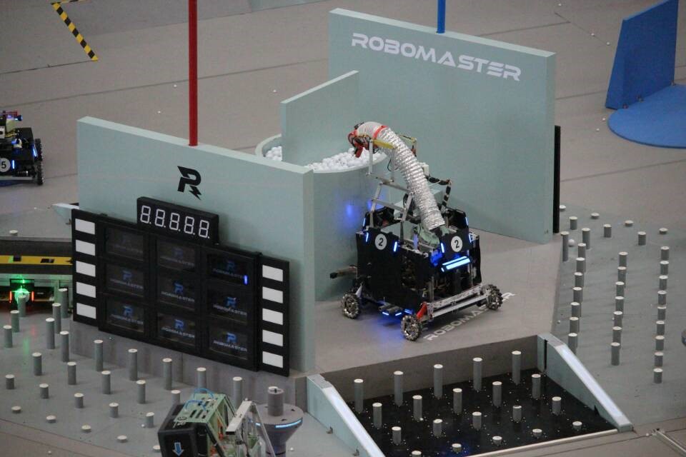 【本网讯】5月19日,参加第十六届全国大学生机器人大赛RoboMaster2017机甲大师(西部赛区)小组赛的22支队伍在bv伟德国际1946航空港校区体育馆进行了彩排,熟悉比赛场地和比赛规则。