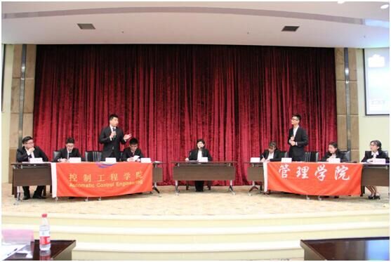晋级决赛的参赛正反方分别是控制工程学院和管理学院代表队。比赛双方的辩题为“面对就业压力,大学生应该深耕专业知识还是积极选择创业”。在阐述了本方论点后双方辩手进行了激烈的交锋,旁征博引,据理力争,使现场气氛迅速升温。在之后的自由辩论阶段,双方选手你来我往,将辩论赛推向了更高层次,使得现场的气氛达到了最高潮。在经过激烈的角逐之后,评委老师针对双方队员在现场的表现进行点评。在主席、评委及全场观众的见证下,控制工程学院摘下了本届辩论赛的桂冠,正方二辩获得最佳辩手,反方三辩获得了最佳辩风。