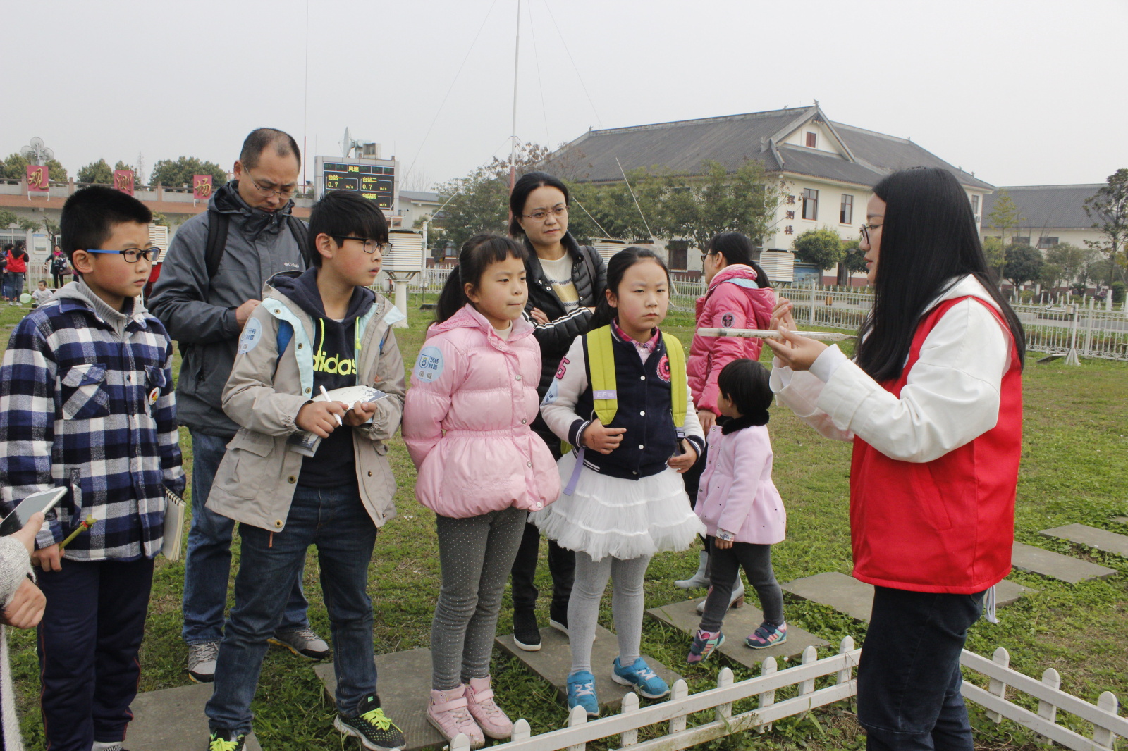前来参观的人员有小学生、大学生、亲子团体,本次科普开放日活动针对不同的参观群体设计了不同的内容,包含了气象观测场参观、气象科普小讲堂、气象游园会三个环节,大家在志愿者的带领下,进入观测场参观气象仪器,近距离接触并了解观测仪器的构造和作用,志愿者生动的讲解引起了小朋友极大的兴趣,纷纷踊跃提问。