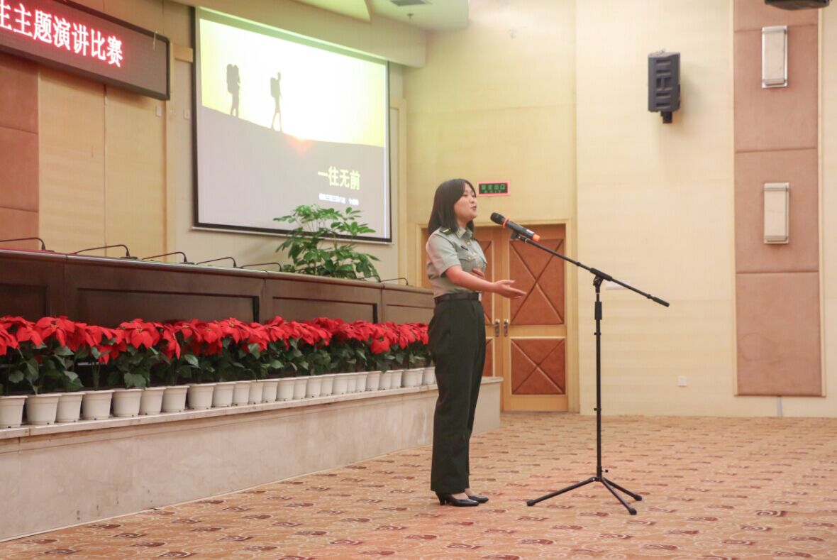 国际会议厅光影闪烁,熠熠生辉,座无虚席。一曲国歌奏毕,比赛正式拉开帷幕。各连队精心挑选出的14名选手一一登台,用朴实的语言、亲身的经历,阐述着自己对国防事业的热爱,表达了愿意为部队建设奉献青春的心愿。“太阳落,山河不落!那是一个民族,脊梁挺立!”三号选手贾皓天演讲的《山河不落》慷慨激昂,激情飞扬,赢得了观众一阵又一阵掌声;尖刀三连苏逸则讲述了自己因受“许三多”这一角色感染,立下了从军报国这一理想后坎坷的成长历程,追梦的旅途难免挫折与彷徨,脚步或曾停歇,赤子之心却永不熄灭!通过他们的精彩演讲,我们仿佛又回到了最初的起点,看到了曾经为理想拼搏的自己和略带苦涩的集训岁月。这次演讲比赛赛出了风格,赛出了水平,更赛出了成信大国防生独特的魅力和风采。