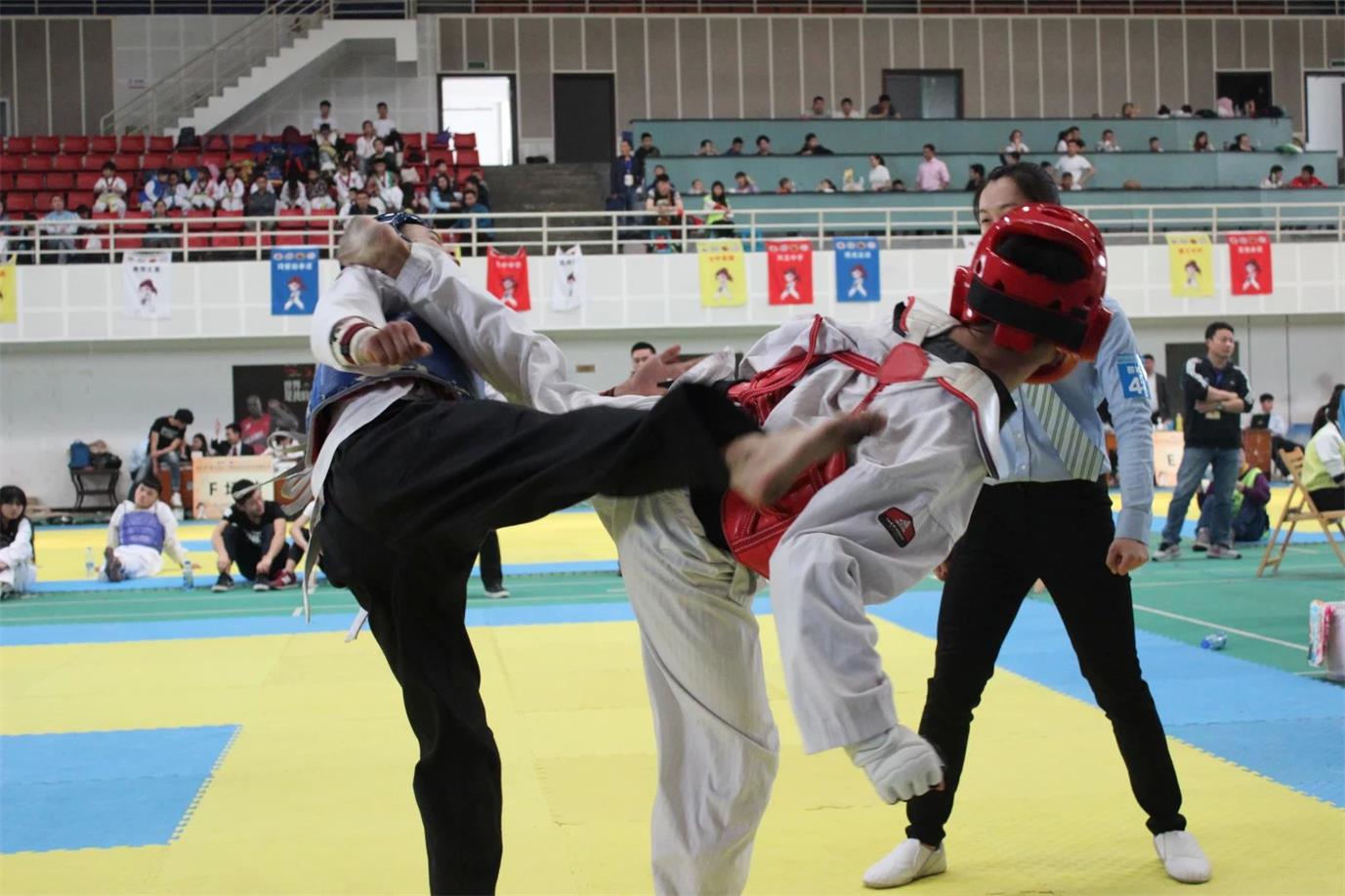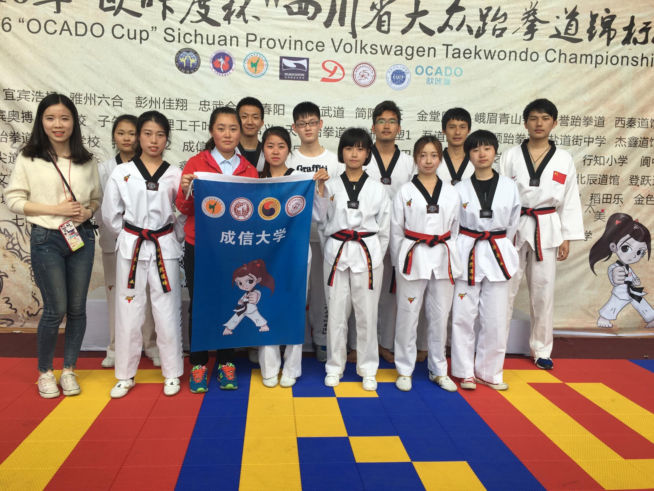 【本网讯】4月9日至10日,“欧咔度”杯四川省大众跆拳道锦标赛在伟德官网体育馆举行,本次参赛有6大高校,其中还有中学、小学以及省市道馆,参加人数为2400人之多,伟德官网派出17名学生参加本次比赛。体育部樊翔领队,刘印 、陈晓霞、邹慧玲作为教练员代队参加本次比赛。