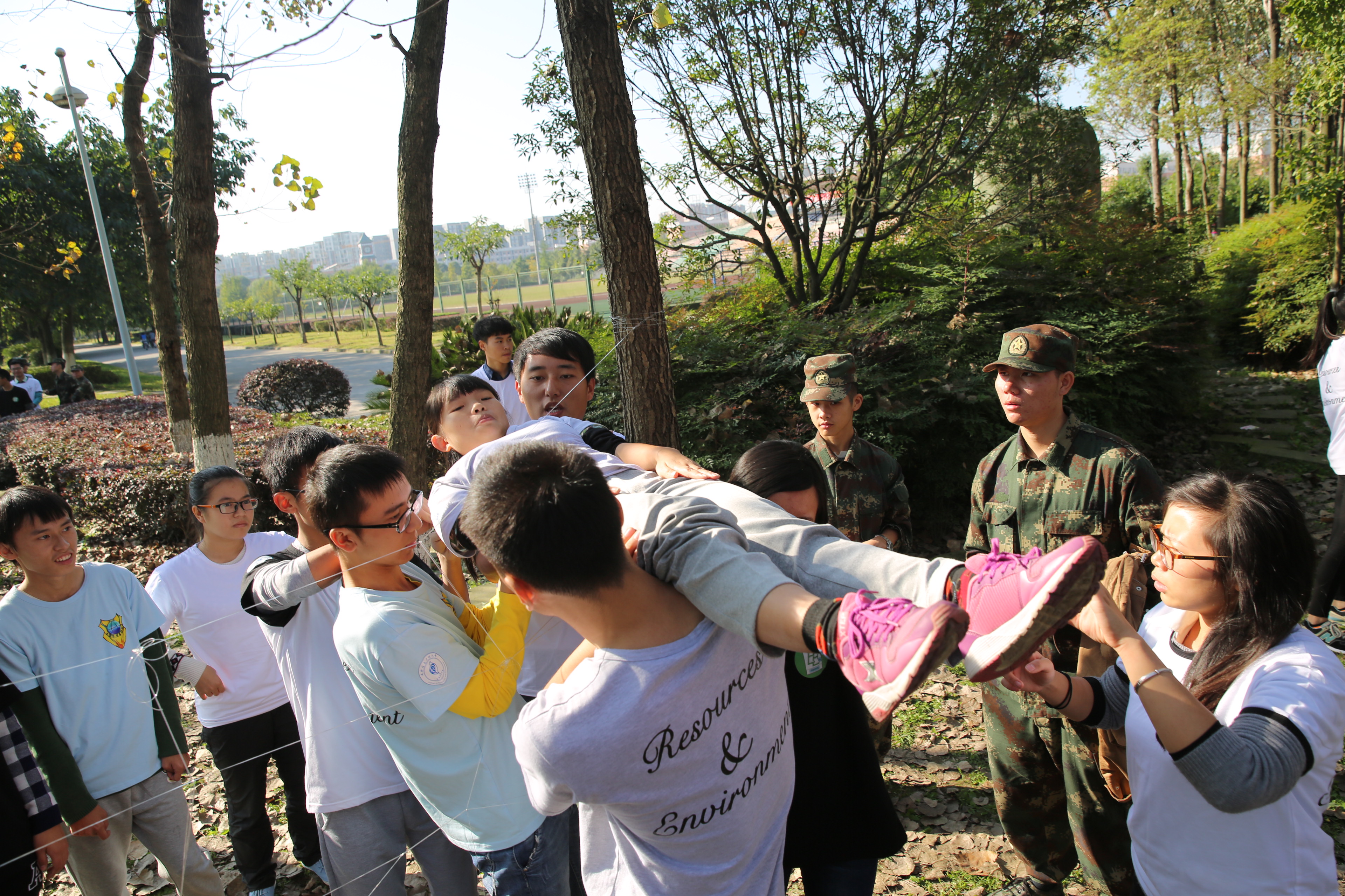 【本网讯】为进一步增强新生之间的团队协作能力和身体素质,加强新生之间的交流沟通,11月8日,资源环境学院组织全体2015级新生进行户外素质拓展活动。新生辅导员王燕老师全程指导。