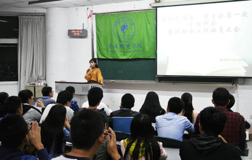 各个部门的部长依次上台为大家介绍了部门的干部、工作规划及自己对部门的期望与寄语。主席团的成员讲解了学生会的规章制度和工作中的注意事项,他们同时强调了内部建设的重要性,坚持“对内优质成长,对外优质服务”的工作原则,并对运动会的相关工作作了介绍与安排。最后,干事们也相互交流了自己加入部门后的感受,并表达了自己对未来的美好憧憬。