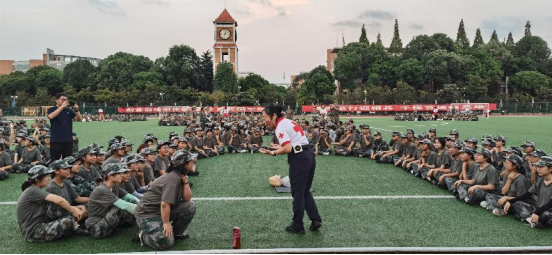 此次培训于9月5日、9日、10日在航空港校区第一田径场顺利开展,邀请到成都市双流区红十字会的专业讲师团队进行授课,每天15个方阵,由15位专业老师深入每个方阵进行互动教学。培训内容涵盖了心肺复苏(CPR)、海姆立克、中暑防治、心肺复苏操作等急救技能。全体2024级本科新生参与到此次培训,展现出高度的热情和参与度。