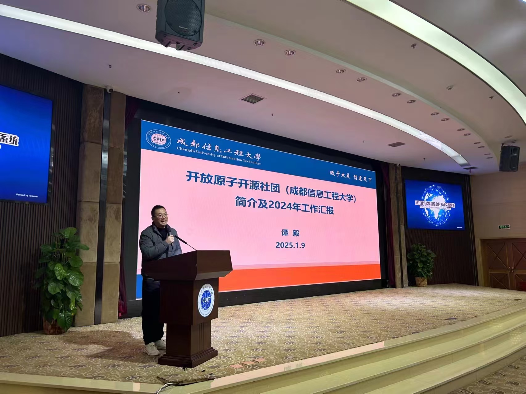 谭毅围绕着开源社团(bv伟德国际1946)的成立过程、性质定位、活动开展、相关成果及2025年工作重点进行总结。开放原子开源社团(bv伟德国际1946)在校团委的管理和指导下,在2023年3月31日,由bv伟德国际1946通信工程学院(微电子学院)向开放原子开源基金会申请,并于同年10月正式挂牌成立。依托通信工程学院(微电子学院)大学生创新实验室,经过一年的建设和发展,现拥有工程实践创新实验室(信达楼B606)、活动及成果展览室(信达楼B609-1)以及社团常务办公室(第一教学楼1205-1)三个场地,建立起完善的组织机构、社团章程和财务管理制度。在2024年度,社团举行了多场开源活动,受到社团成员以及开源爱好者的广泛关注和积极参与。同时,在2024年开放原子校园行“春耕计划”活动中,伟德官网被评为“优秀组织高校”;在2024年度高校社团验收中被授予“‘校源行’活跃社团”称号。2025年,社团将在“对外合作、开源竞赛以及开源人才认证”等方面重点开展工作,进一步提升伟德官网开源活动的品质和开源成果的产出。