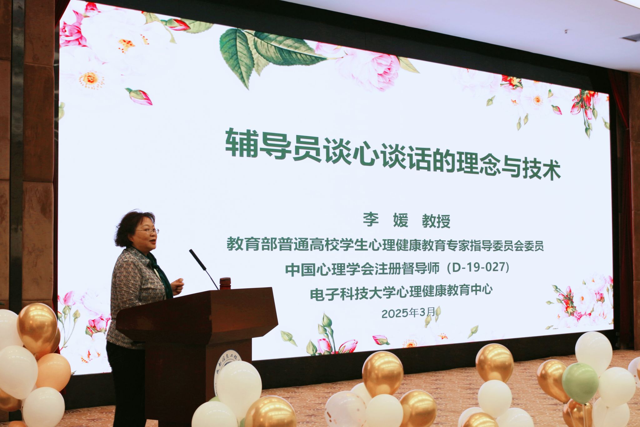 本次讲座由四川省心理学会大学生心理健康教育专委会主任委员、电子科技大学教授李媛主讲,讲座主题为“点亮心灵灯塔·探秘沟通艺术——心理育人工作中的谈心谈话理念与技术”。来自省内各高校心理健康教育工作队伍及bv伟德国际1946的近300名师生到场参会。